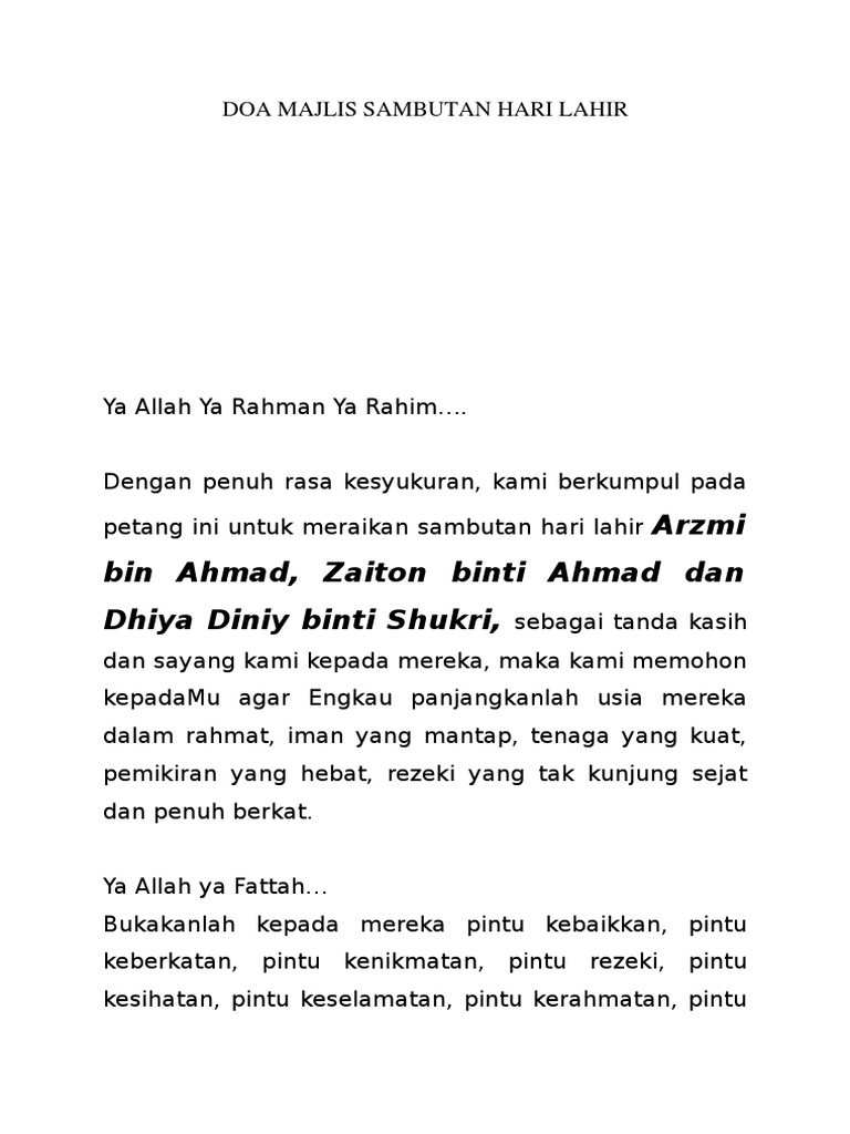 Doa untuk bayi yang baru lahir sesuai sunnah doc contoh perjanjian sewa rumah doa untuk jenazah lelaki doa ucapan hari lahir untuk anak lelaki dewasa dokumen yang perlu. Doa Untuk Sahabat Sempena Majlis Sambutan Hari Lahirnya Pdf from imgv2-1-f. Ucapan selamat hari jadi atau.